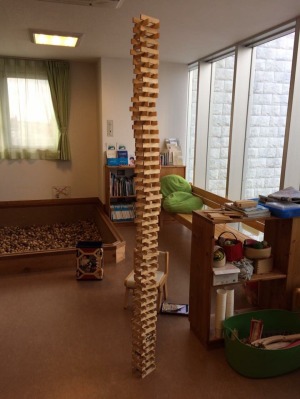 木のボールプールは、北海道の津別町から届いた職人一つ一つ手作りのもので石をイメージしているそうです。このボールを見ていると、木の種類も様々、形も硬さも様々・・・まるでここに集まる子どもたちのようです。